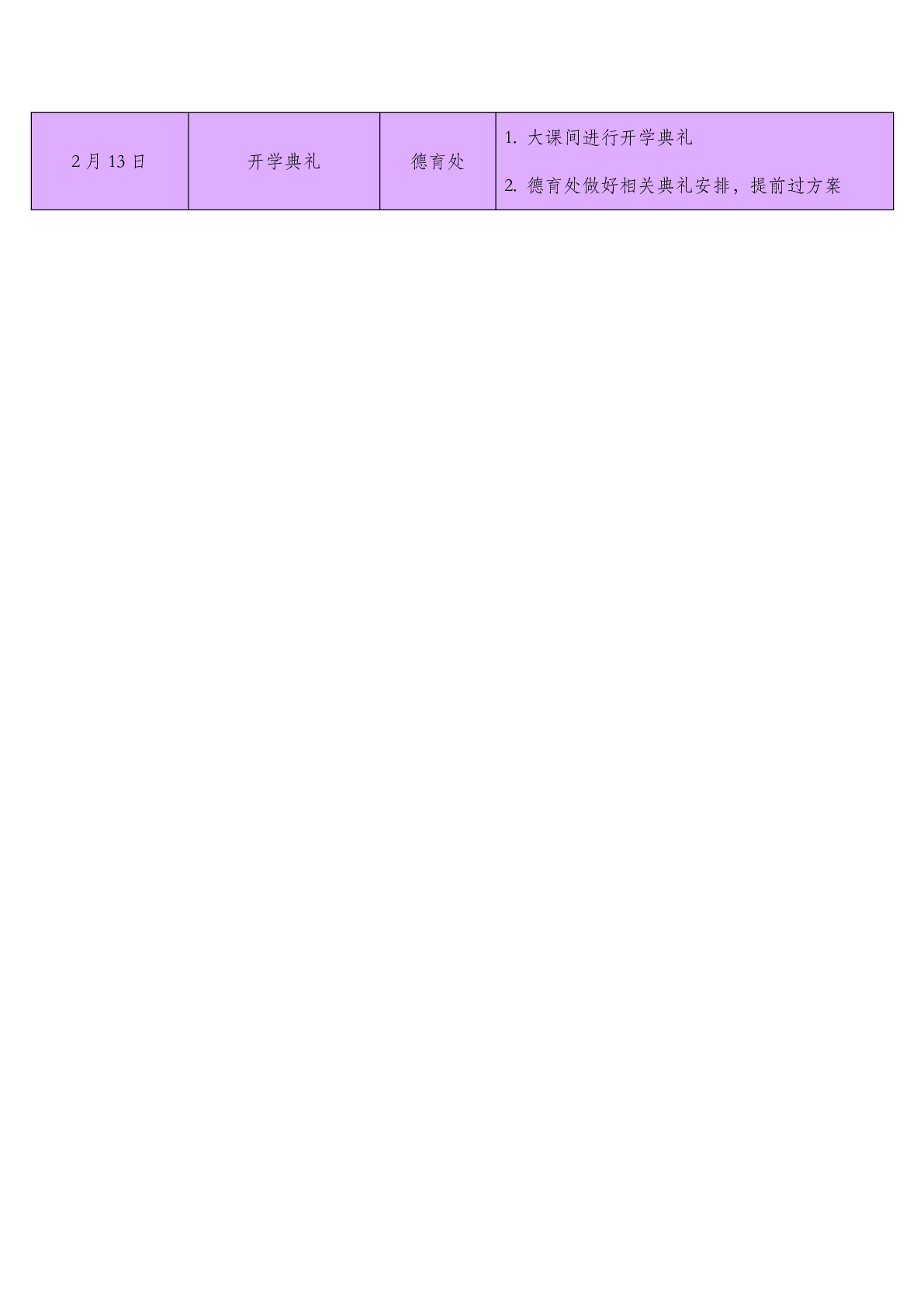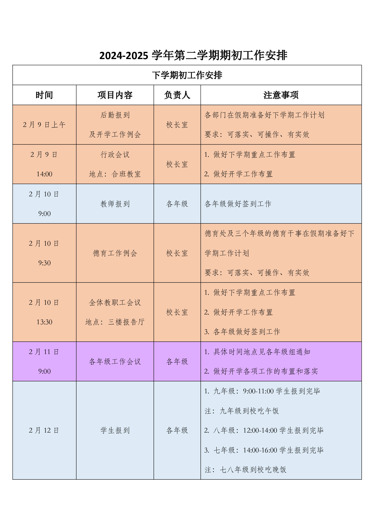 2024-2025学年第二学期期初行事历
