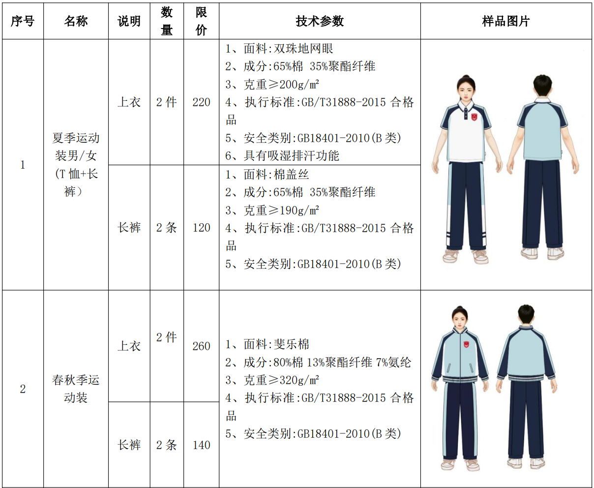 6.样品提交日:2026年1月30日前(供应商需准备好各款式校服样品供评审)